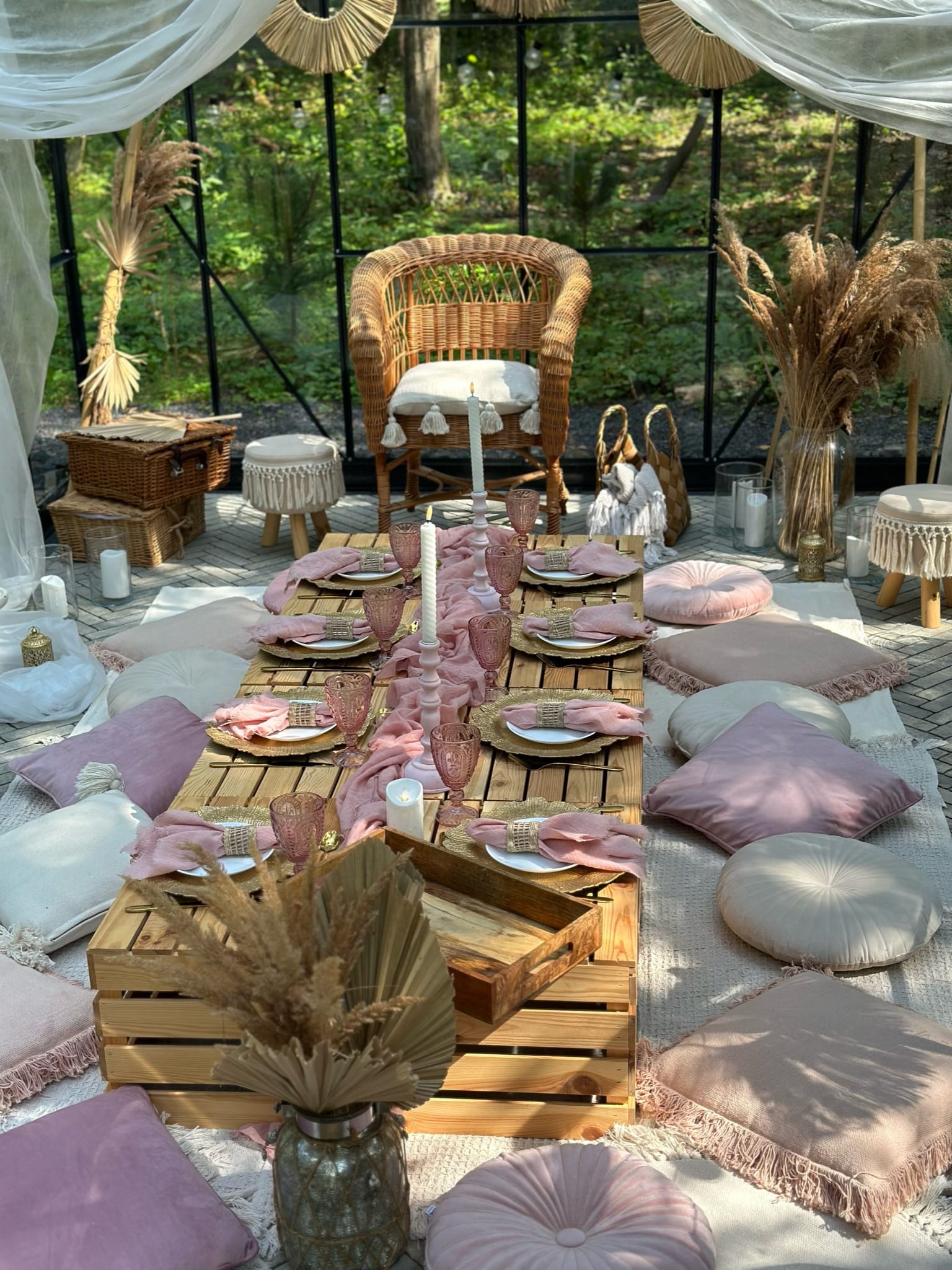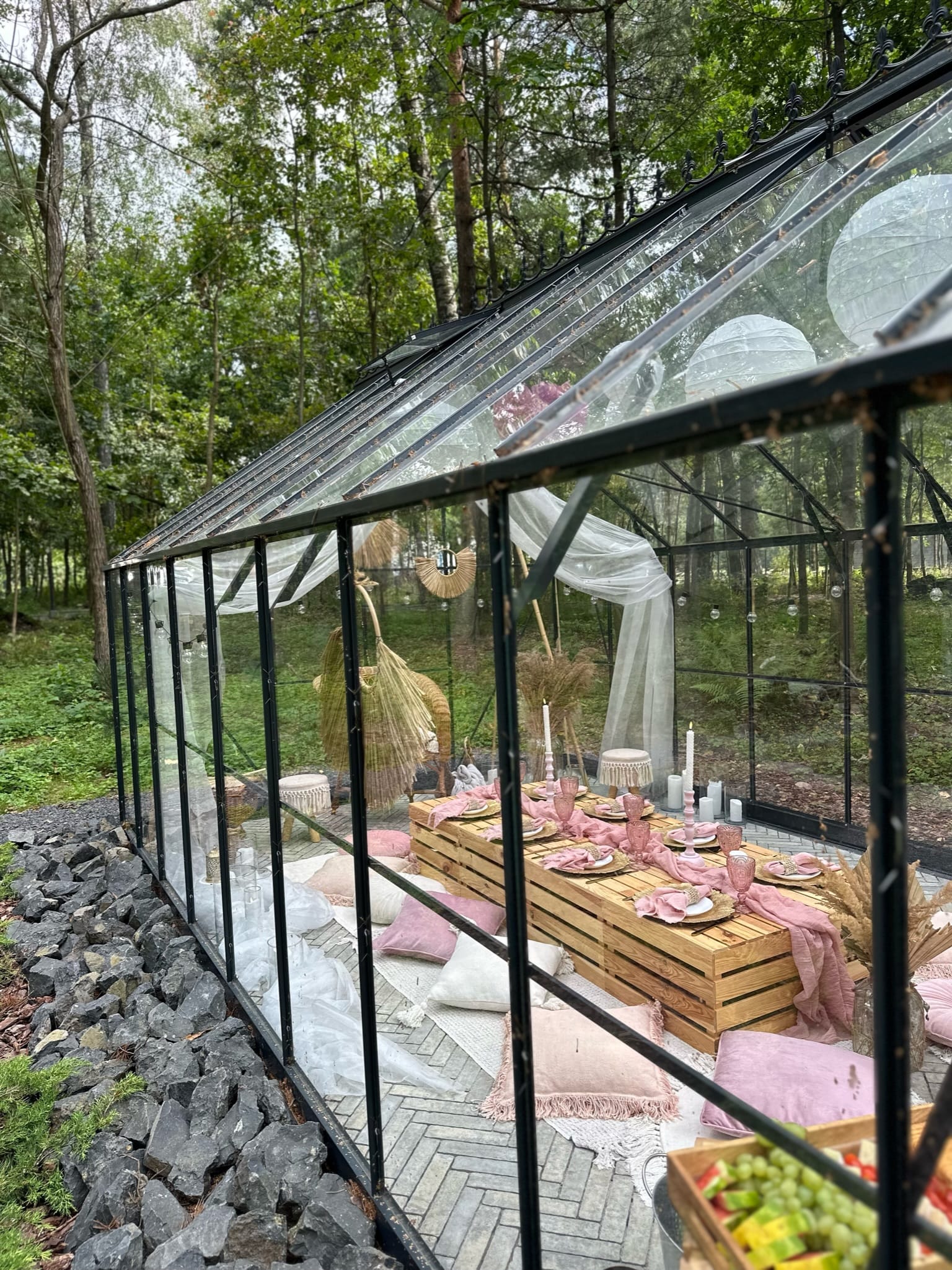 Marzysz o klimatycznym pikniku, wieczorze panieńskim lub wyjątkowej kolacji w plenerze? Kliknij w ikonę i skorzystaj z usług PicnicoveLove, które zadbają o każdy szczegół i stworzą niezapomnianą atmosferę w naszym GlassHouse.